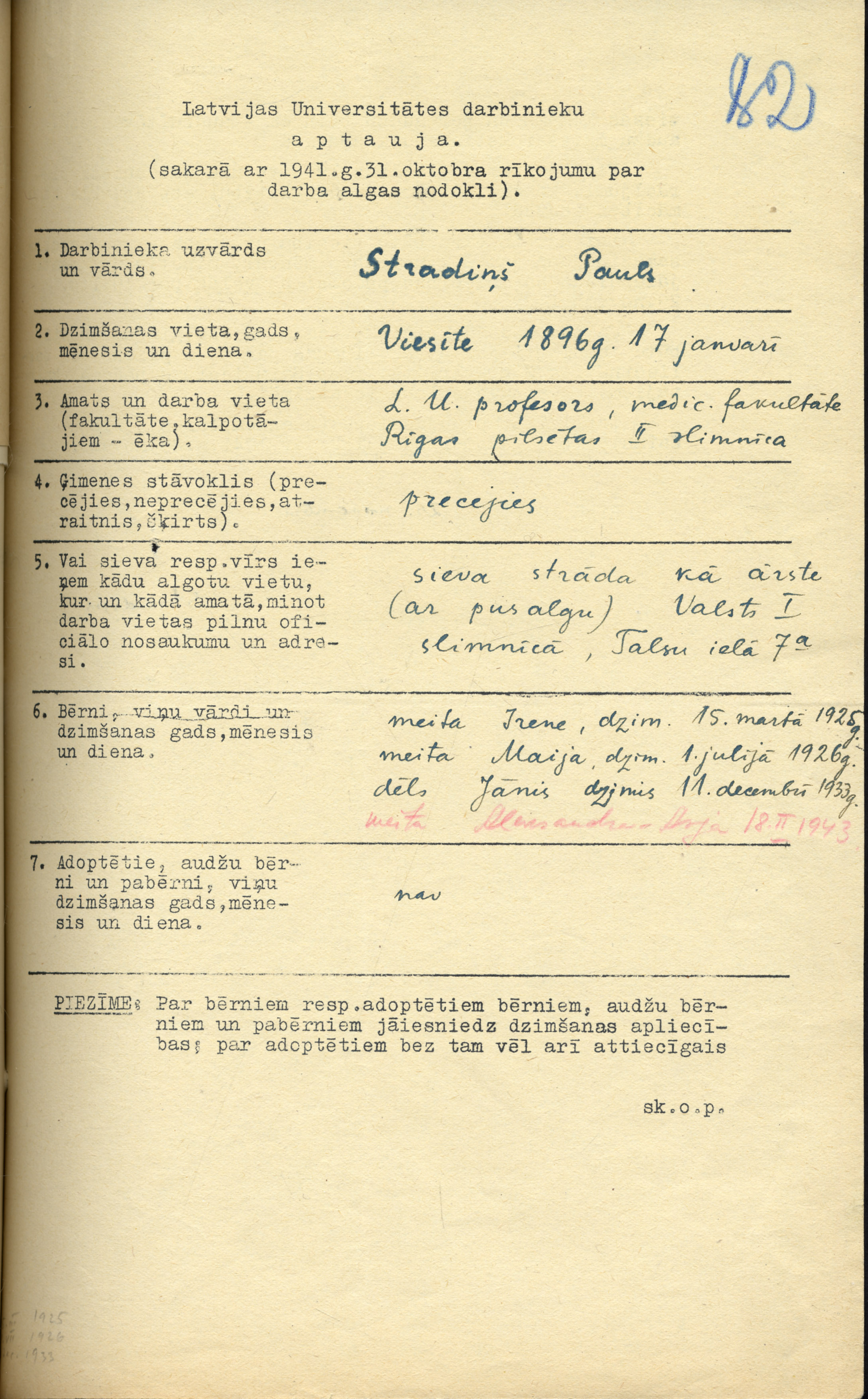 Pauls stradiņš ir dzimis 1896. gada 17. janvārī Viesītē. 1914. gadā P. Stradiņš ar zelta medaļu absolvēja Aleksandra ģimnāziju Rīgā, un uzsāka medicīnas studijas Kara medicīnas akadēmijā Petrogradā. Studijas topošais mediķis beidza ar izcilību un vēlāk aizstāvēja disertāciju Hospitālās ķirurģijas klīnikā.