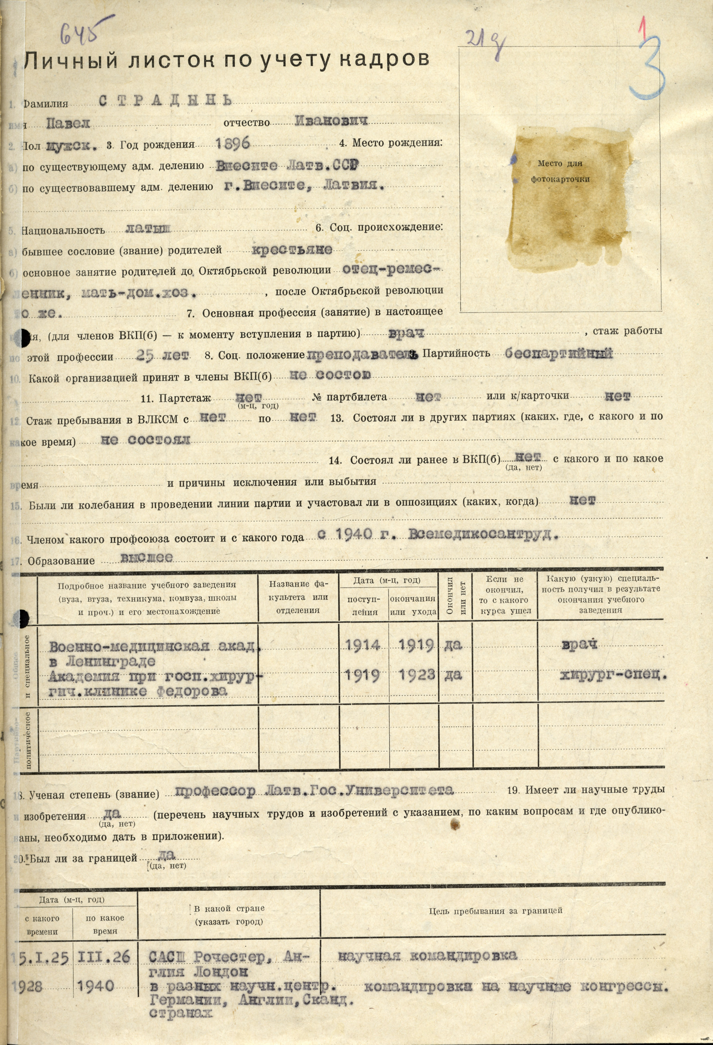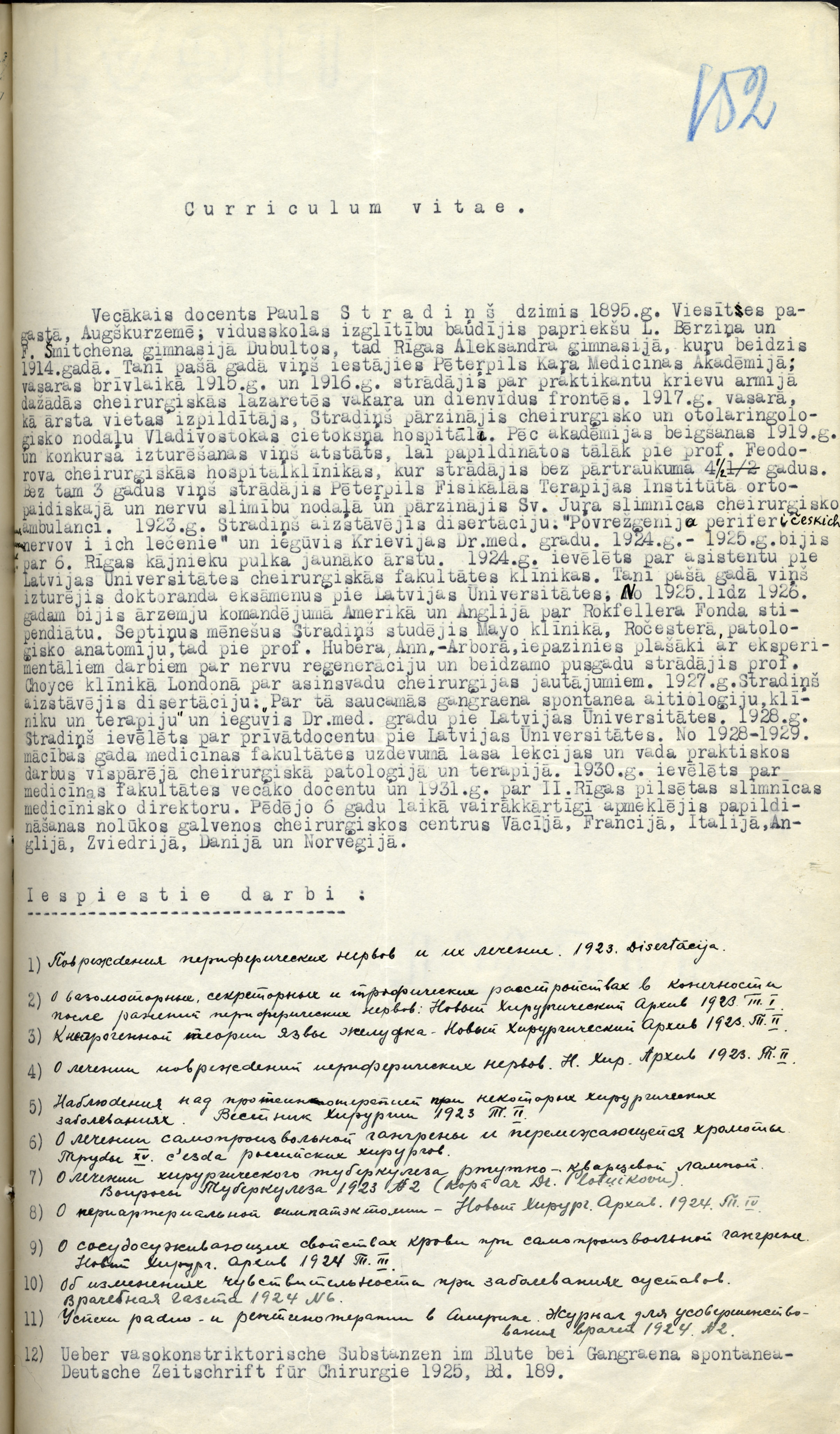 No 1924. gada P. Stradiņš strādāja Latvijas Universitātē, kur 1928. gadā kļuva par Vispārējās ķirurģijas katedras vadītāju, bet 1933. gadā viņu ievēlēja par profesoru. No 1944. gada P. Stradiņš vadīja Ķirurģijas katedru. Pirmajos pēckara gados viņš vadīja arī visu Medicīnas fakultāti – no 1944. līdz 1946. gadam bija tās dekāns. Paralēli darbam augstskolā un zinātnē P. Stradiņš darbojās arī slimnīcā. No 1931. līdz 1941. gadam viņš bija Rīgas pilsētas 2. slimnīcas medicīniskais direktors, bet pēc kara – no 1944. līdz 1947. gadam – galvenais ārsts. P. Stradiņš ir devis būtisku ieguldījumu Vēža slimnīcas, 2. Medicīnas skolas, Asins pārliešanas stacijas, Medicīnas vēstures muzeja un Latvijas Zinātņu akadēmijas Bioloģijas un eksperimentālās medicīnas institūta izveidošanā.